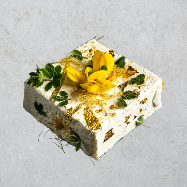 Golden Blossom is a luxurious fresh goat chevre beautifully covered in native herbs and edible flowers, finished off with a touch of golden leaf for an extra dash of elegance.